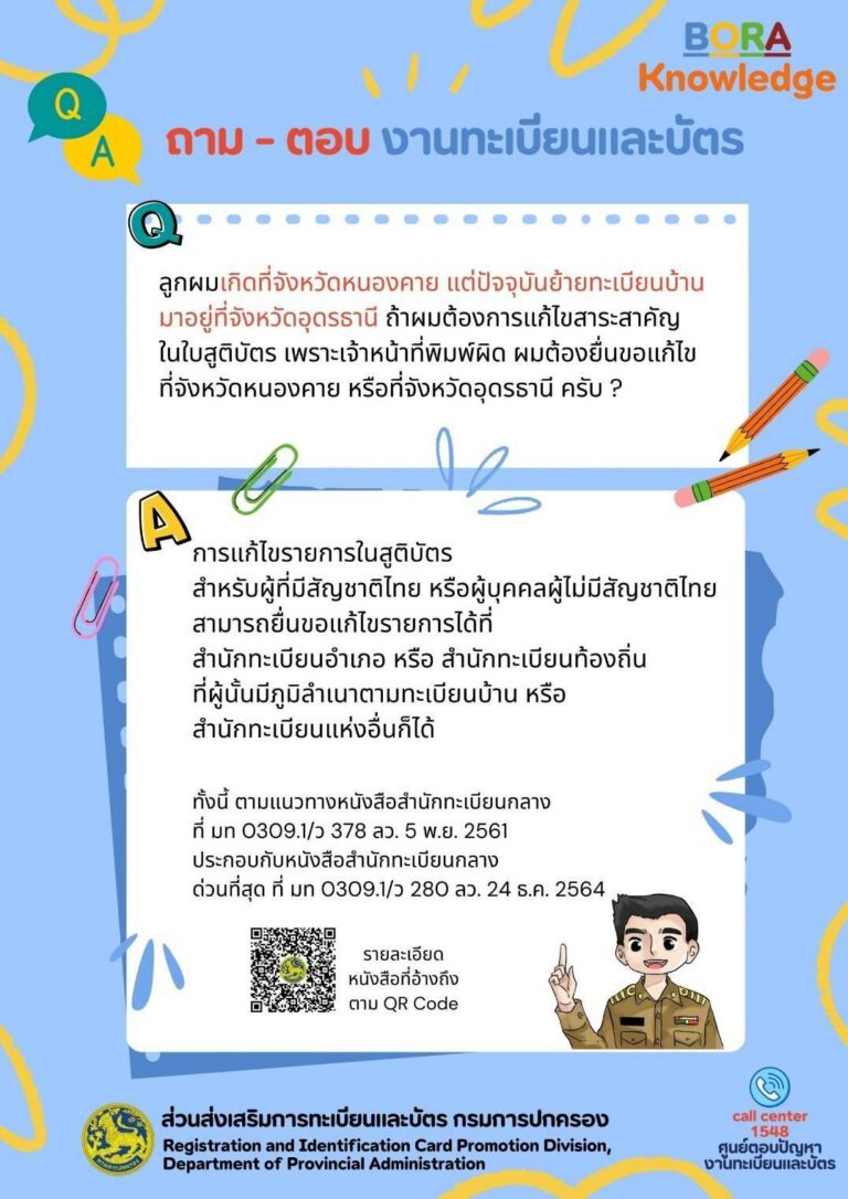 bora-knowledge, ประชาสัมพันธ์ถาม – ตอบงานทะเบียนและบัตร ตอนที่ 13หัวข้ออื่นๆที่น่าสนใจ callcenter16 กันยายน 2567