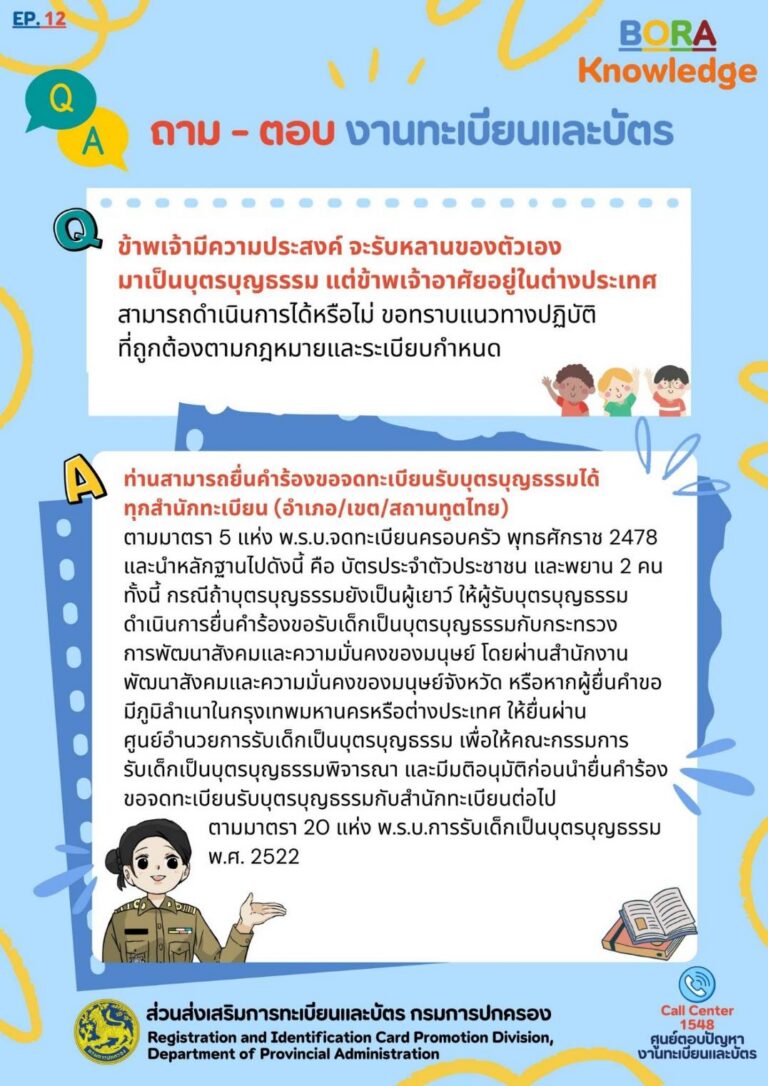 bora-knowledge, ประชาสัมพันธ์ถาม – ตอบงานทะเบียนและบัตร ตอนที่ 12หัวข้ออื่นๆที่น่าสนใจ callcenter5 กันยายน 2567