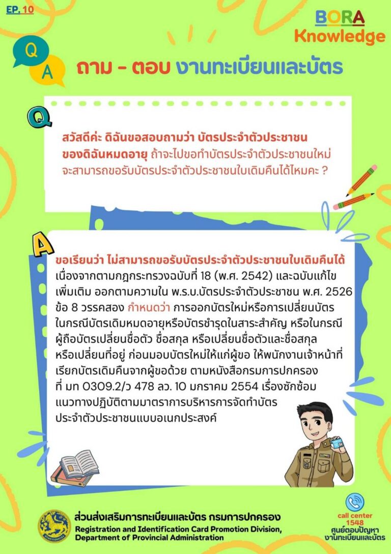 bora-knowledge, ประชาสัมพันธ์ถาม – ตอบงานทะเบียนและบัตร ตอนที่ 10หัวข้ออื่นๆที่น่าสนใจ callcenter26 สิงหาคม 2567