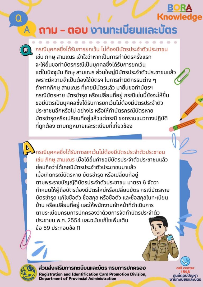 bora-knowledge, ประชาสัมพันธ์ถาม – ตอบงานทะเบียนและบัตร ตอนที่ 5หัวข้ออื่นๆที่น่าสนใจ callcenter10 มิถุนายน 2567